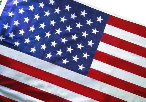 Spun Polyester is the most durable US flag on the market. The open weave reduces fabric stress and resists high winds. These flags are the best choice if you fly the US flag 24/7 and your wind speed is higher. As these US flags are made from heavier fabric they require a higher wind speed to "fly" than nylon flags. Also they require more effort to put up and take down. The 2-ply polyester looks li